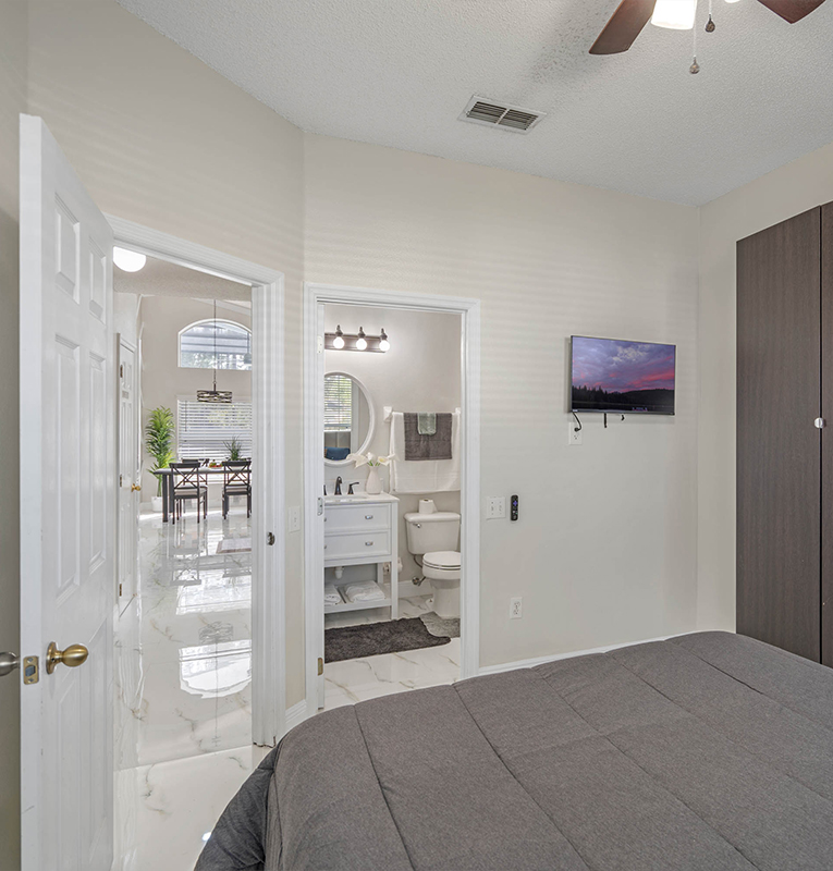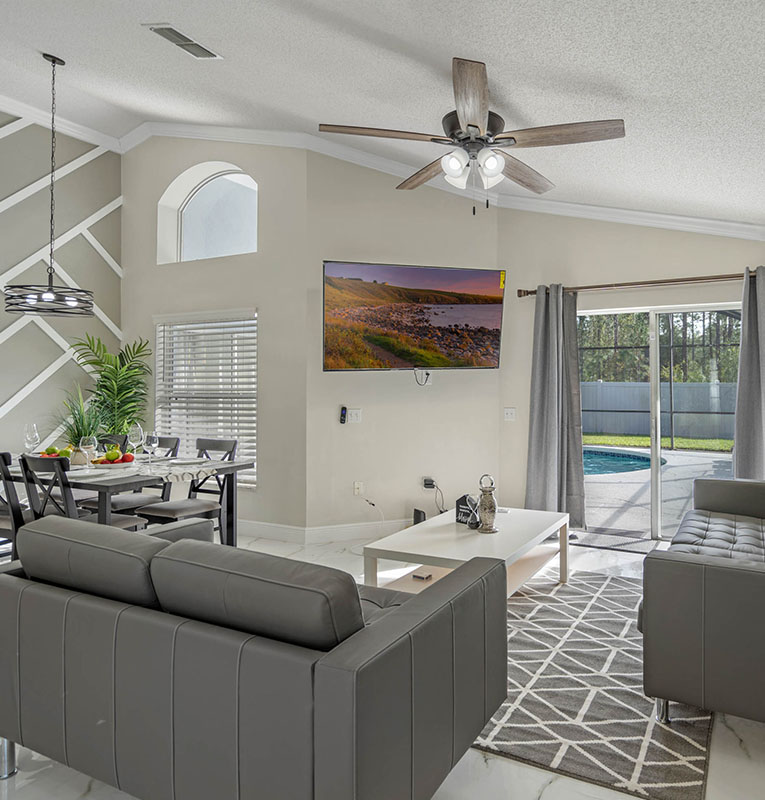 Home has it’s own private heated pool that makes this space the perfect oasis for relaxation and fun for a family of 8!