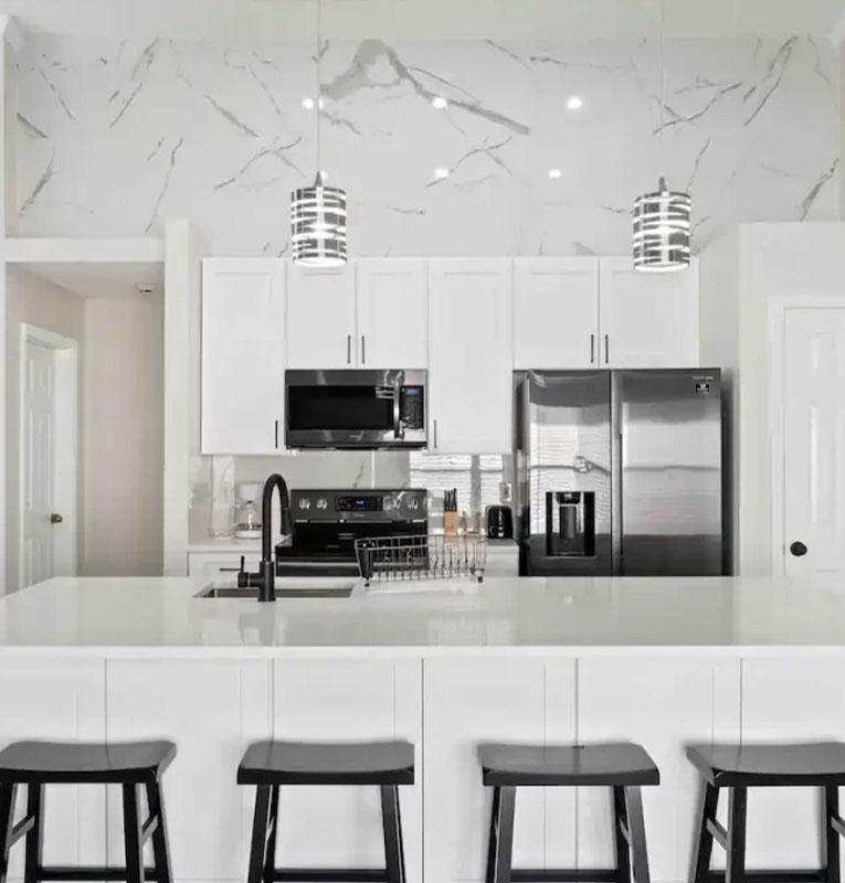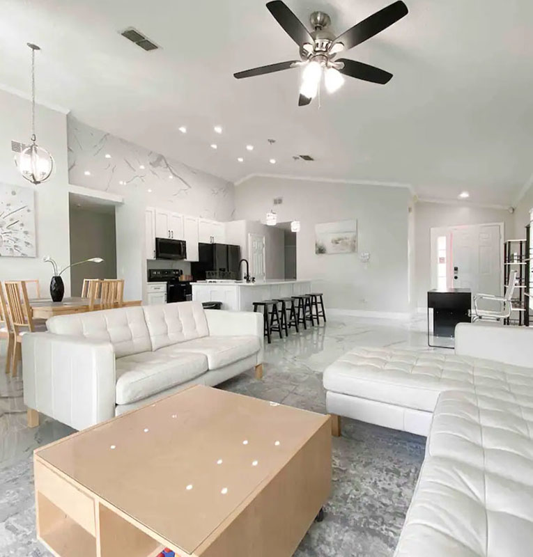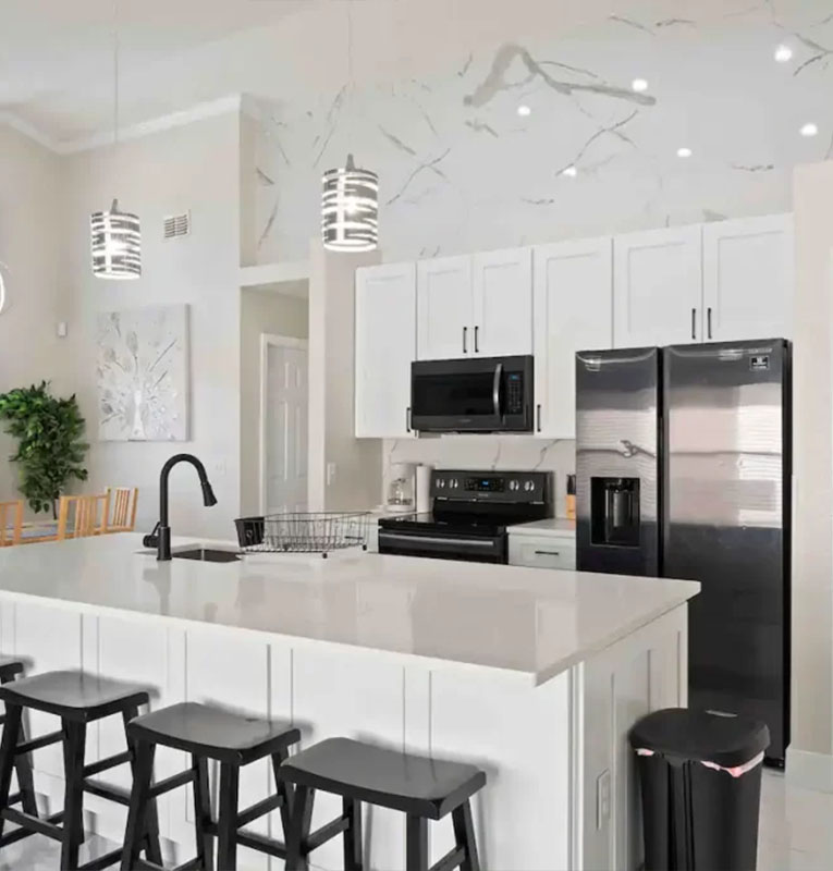 Beautiful 4 bed 3 bath home located in the gated community Approximately 20 minutes to all Disney World Theme parks and main attractions. The home is designed with a luxurious Porcelain tile throughout, the kitchen is fully equipped for dining and entertaining.